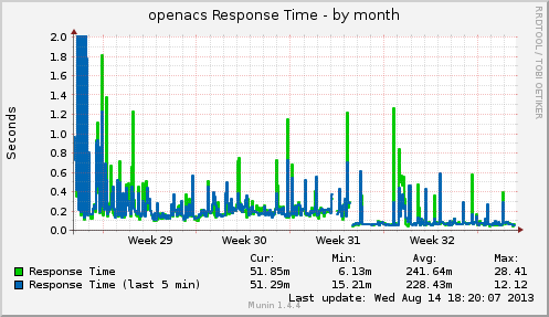 In the chart below, one can see clearly the performance increase in the drop of the response-time line in the month-graph in week 31.