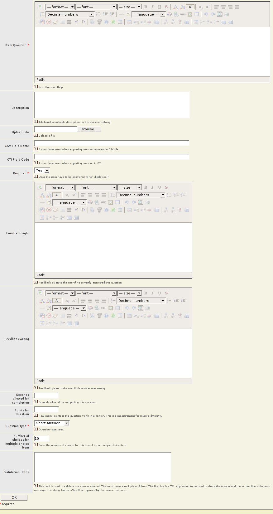 Now the new form. The question creation process used to require filling out 3 forms. We compressed it to one form by removing unused settings, and making intelligent default decisions. Some more work needs to be done. Assessment has a huge amount of complex features and it is not clear how they are used together to create a certain type of assessment. It is clear that all of the settings rarely need to be used together.